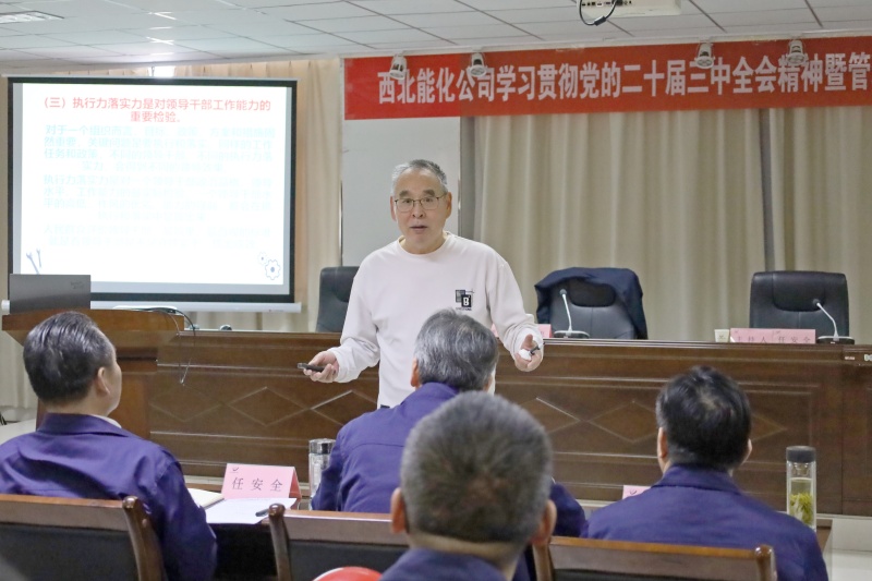 最后,公司党委书记、董事长任安全作总结发言。他指出,一是得其三昧,融会贯通。要自觉提高政治站位,充分认识党的二十届三中全会的重大历史意义、现实意义、战略意义,深刻把握《决定》的丰富内涵和精神实质,同西北能化公司高质量发展的现实需求结合起来,同各级管理人员履职尽责和执行力提升的迫切需要结合起来,做到学有所思、学有所获。二是学以致用,知行合一。要深刻认识到执行力建设的重要意义,从自我革命的高度出发,用好作风转变“八字诀”,打造好执行力体系,以强大的责任感和使命感应对国际形势、甲醇市场、安全生产等因素带来的风险挑战,助力企业突破发展困境。三是辐射带动,示范引领。要坚持以点带面,以面带全,让本次讲座的精髓要义能够沿着层级脉络,有条不紊地学习传达下去。要以自身执行力提升为原点,逐步向车间、班组延伸,辐射每一名职工,逐步形成具有鲜明西北能化特色的执行文化,打造出一支专业、高效、执行力强的职工队伍,为公司的高质量发展保驾护航。(刘欣馨 摄影报道)
