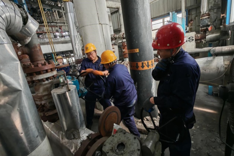 当日正值酷暑,室外气温攀升至 35℃,而气化厂房内受设备散热影响,温度更是突破 45℃。在闷热难耐的环境中,检修工人的工装很快被汗水浸透,却丝毫未影响作业节奏。换阀门的师傅专注操作,确保每一个螺栓紧固到位;换烧嘴的团队精准协作,反复检查各法兰密封到位;倒盲板的工人合力攻坚,在高温中坚守规范流程。豆大的汗珠从他们额头滑落,滴在设备上瞬间蒸发,却浇不灭大家的工作热情。
