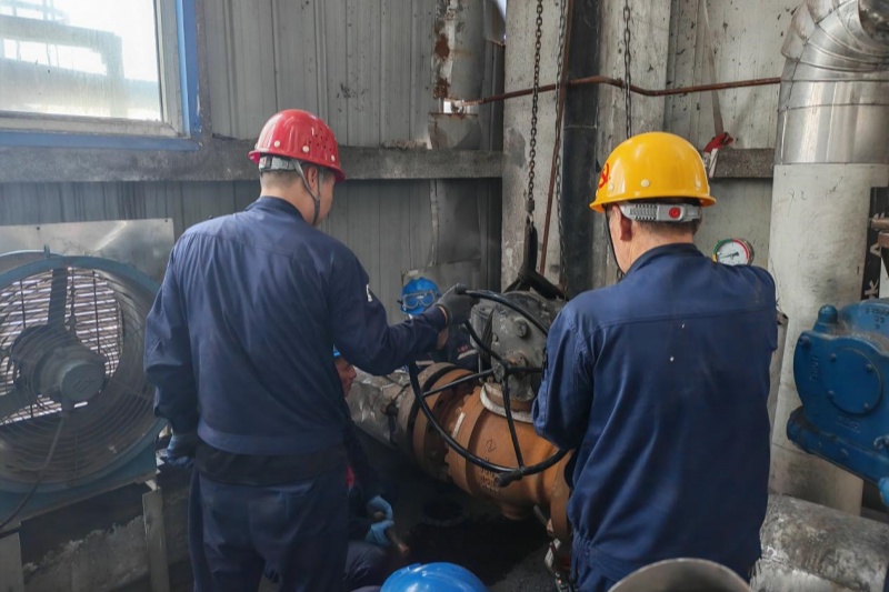 公司领导郭勇也亲临现场部署安全工作,仔细询问作业进展,反复叮嘱:“必须在保证安全的前提下严控检修质量,高温天气更要科学排班,让大家轮流休息,谨防中暑。”车间管理人员全程扎根现场,紧盯关键环节监护,及时协调解决突发问题。工会也在第一时间为一线工人送来矿泉水,一句句“注意防暑”的叮嘱,让高温下的坚守更添暖意。
