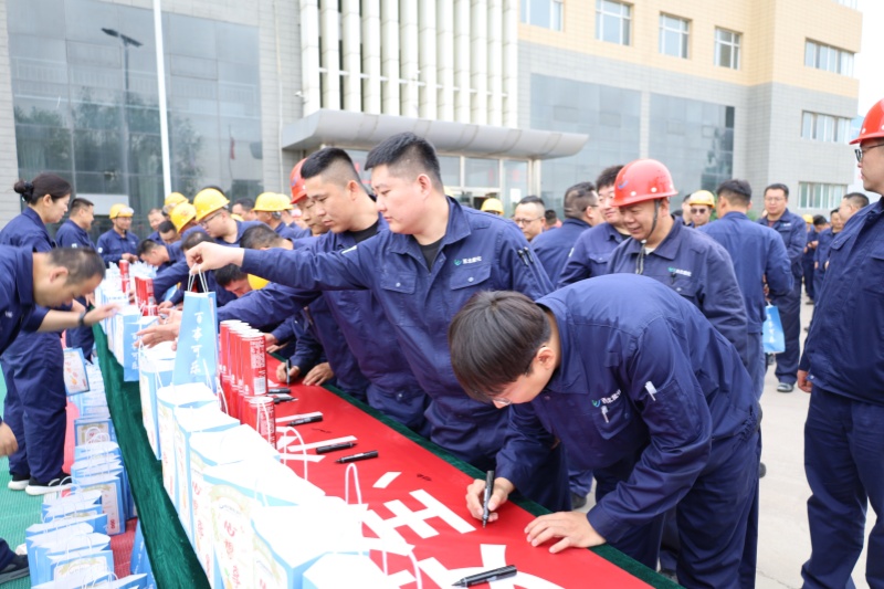 随后,全体人员观看了甲醇泄漏应急处置实操展示并依次签字、承诺,公司为参加仪式的人员送上了寓意诸君“苹”安,心想事“橙”,“百事”顺遂,万事“可乐”的特色礼物,安全月启动仪式在热烈氛围中落下帷幕。