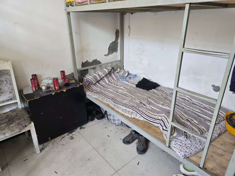 部分宿舍整体卫生良好,但仍存在桌面杂乱、被褥脏且凌乱等问题。一楼111宿舍地上污水集聚、烟头随地乱扔、垃圾随意在桌上堆放,造成了安全隐患。