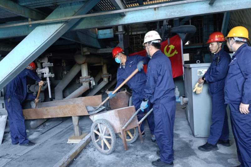 各党员同志率先垂范,冲锋在前,顶着高温,一锹一锹将炉渣装入推车运至指定区域,把党支部的战斗堡垒筑在生产最前沿,让党徽在推渣一线闪耀光芒,在炎炎夏日里谱写了一曲干群同心的奋斗赞歌。