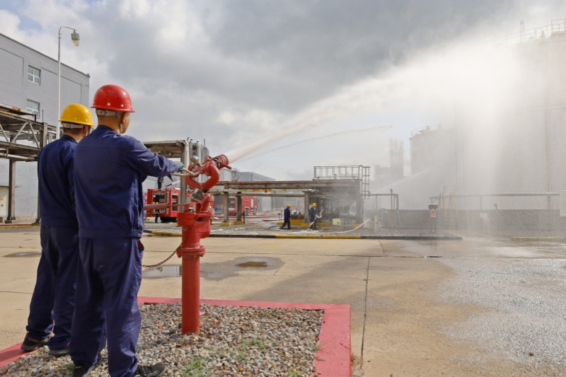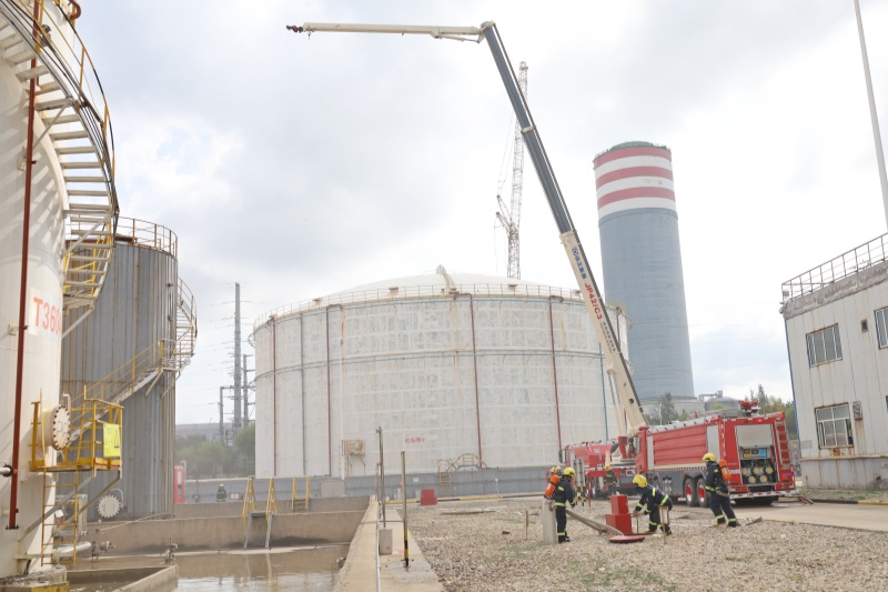 演练实景模拟西北能化公司中间罐区的粗甲醇A罐出口金属软管发生破裂,导致甲醇泄漏的应急救援。采取“实景+实战”的方式开展,共设置事故报警、启动应急响应、政企协调联动机制、初期火灾扑救、火灾事故应急疏散逃生、火灾事故扩大和应急响应升级、被困人员的救援和救护、整体火灾扑救和环境监测等多个环节,演练现场紧张有序,环环相扣,达到了预期效果。