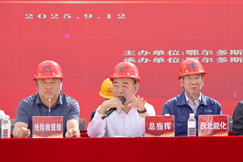 为进一步贯彻“安全第一、预防为主、综合治理”的安全生产方针,有效提高全公司安全生产事故应急救援能力,建立、完善处置突发事故应急救援体系和快速高效的应急响应机制,检验政企应急联动机制的有效性,9月12日上午,西北能化公司联合准格尔经济开发区(大路园区)、消防救援站、生态环境局、医院和公安等相关部门,开展2025年政企联动综合应急救援演练。准格尔经济开发区管委会副主任杨报,准格尔经济开发区应急管理委员会办公室主任刘永清,西北能化公司领导以及各应急救援小组成员参加演练。
