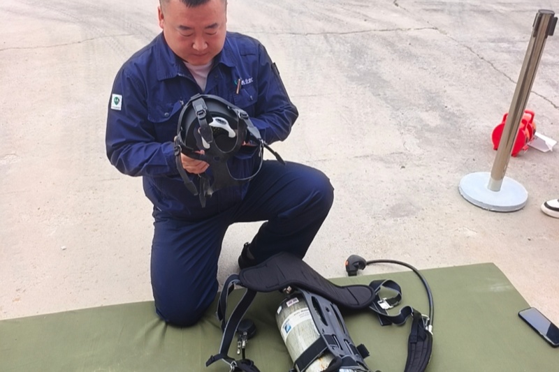 实操赛场更显激烈,三大项目直击应急关键:灭火器灭火需按“提、拔、握、压”规范操作,精准扑灭模拟油盆火;滤毒罐佩戴要快速选对型号、完成组装与气密性检查;空气呼吸器操作则考验外观检查、穿戴调试等全流程熟练度。安全管理部负责人及资深消防指导员组成的评委组,严抓操作细节,杜绝“重速度轻规范”。选手们反应迅速、技能娴熟,赛后分享心得,形成“比学赶超”氛围,最终评选出一、二、三等奖各 1 名。