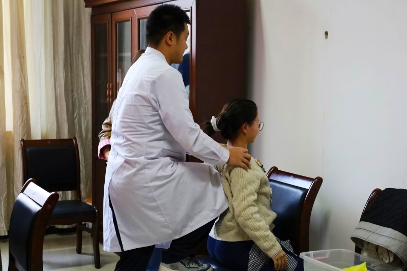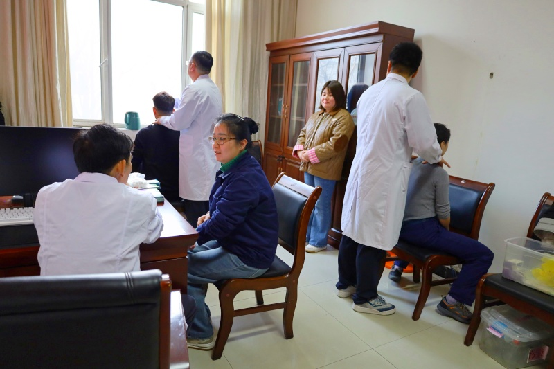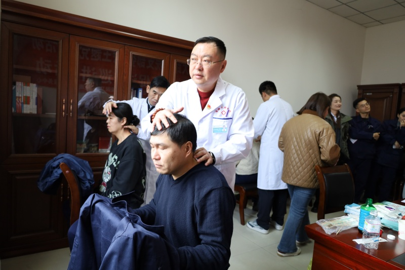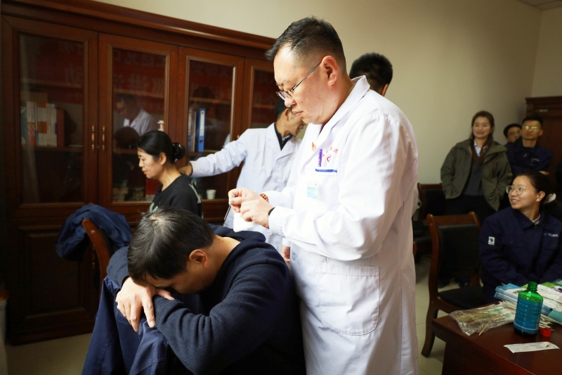 义诊现场,黄院长现场运用针灸技术为员工进行治疗,精准的穴位选取和娴熟的操作手法,让在场员工亲身感受到中医针灸的独特魅力与显著疗效。