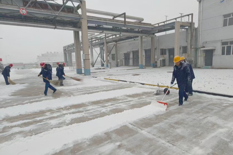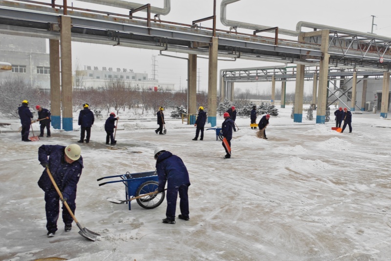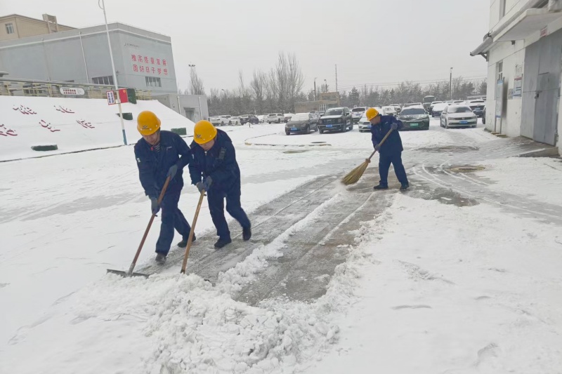 各车间接到指令后,闻令即行、迅速集结,干部职工们手持铁锹、扫帚,对中控主要通道进行集中清扫,快速打通核心通行通道,经过数小时的连续奋战,在各车间的协同攻坚下,二道门至中控门前主要通道的积雪被彻底清理干净,路面恢复整洁畅通,为员工安全通行和生产工作有序开展筑牢了坚实防线。
