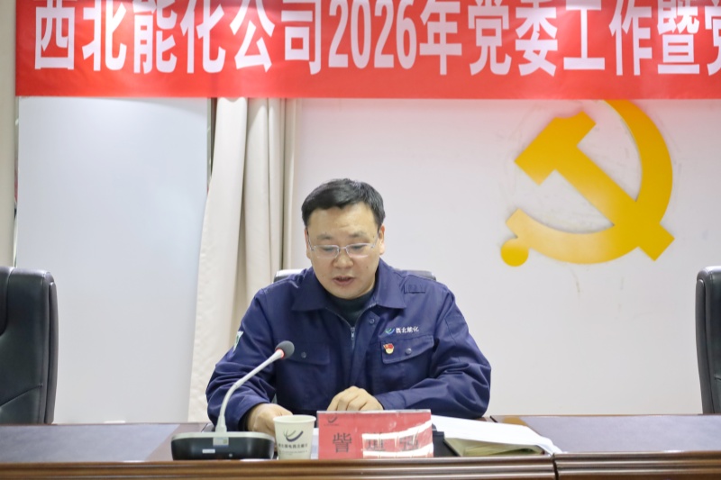 1月9日,西北能化公司召开2026年党委工作暨党风廉政建设工作会议,学习传达中央和省委经济工作会议精神,认真贯彻落实集团公司2026年党委工作暨党风廉政建设工作会议精神,总结工作、研判形势、安排任务,动员公司全体党员干部职工统一思想、坚定信心,同心同向、务实作为,坚决完成各项目标任务,全面开创公司高质量发展新局面。公司党委书记、董事长任安全出席会议并作党委工作报告。公司副总师以上领导、部门负责人、各党支部书记和部分党员代表参加会议。