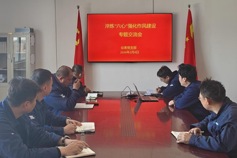 为深入落实西北能化公司淬炼“六心”强化作风建设部署,将作风建设成效转化为岗位履职实效,2026年2月4日15时,仪表党支部组织全体在岗党员及管技人员,召开淬炼“六心”专题交流会。