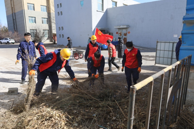 清理死角,美化环境。随后,志愿者们转战零排放厂房背后的"隐蔽角落"。这里因位置偏僻,长期堆积枯枝落叶、零散垃圾和废弃杂物,既影响环境整洁,也存在安全隐患。大家手持铁锹、扫把、小推车,分工协作,清理枯枝、捡拾垃圾、搬运杂物,年轻身影在厂区穿梭,成为春日里跃动的风景。