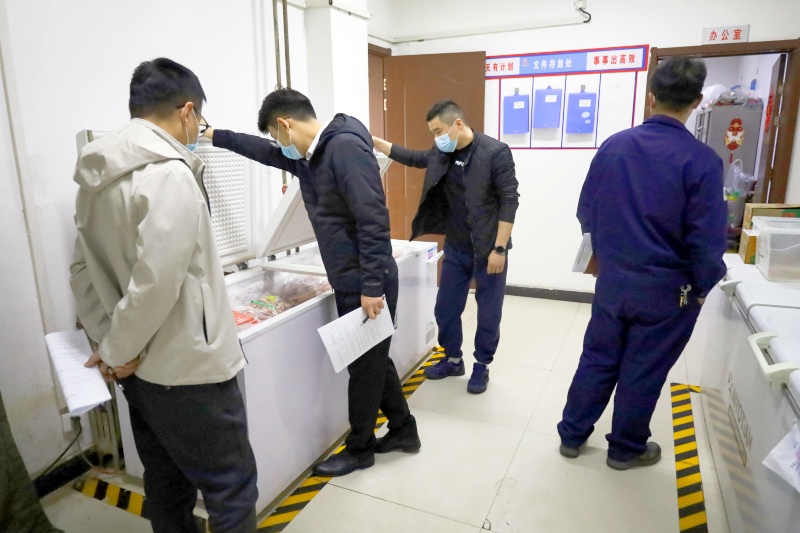 在食堂检查环节,深入操作间、储物间、就餐区,仔细查阅了食材采购台账、食品留样记录及餐具消毒记录,重点核验了粮油、肉类的进货渠道和保质期,确保职工“舌尖上的安全”。