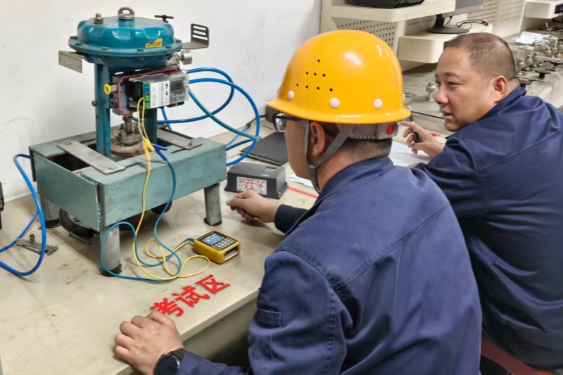考试过程中,考官在操作环节随机提问,引导员工深入思考新型定位器的工作原理,并与传统老式定位器进行对比,引导员工思考新型定位器相比传统老式设备的优势与不足。