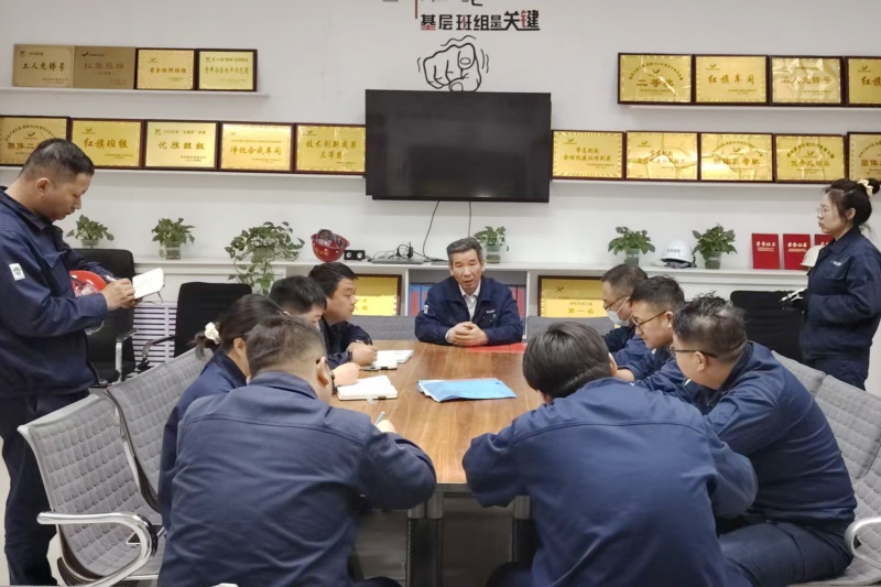 会上,郭勇详细询问了班组人员配置、岗位值守及技能梯队建设情况,认真听取当班生产运行汇报,对车间全体员工坚守岗位、履职尽责的工作状态给予肯定。他强调,一是全体员工要强化业务学习,深刻践行业务能力提升就是安全自我保护的理念,建立班组自主学习、车间专业引导的常态化学习机制,全面提升全员安全防护意识、岗位操作技能及异常工况应急处置能力。二是紧盯装置大修临近的关键节点,重点抓好特殊作业管理,严格落实作业票证制度,强化现场巡检与作业监护,规范作业全流程,做到全程盯防、全程管控。三是抓住学习契机,夯实技能基础。牢牢把握装置大修停车的宝贵窗口期,提前谋划、系统组织专项培训,围绕复杂工艺原理、关键设备检修、操作要点等内容开展靶向学习。四是做到精心操作、精准调节,坚决杜绝误操作、违章操作,以严谨细致的工作作风保障装置安全平稳运行。