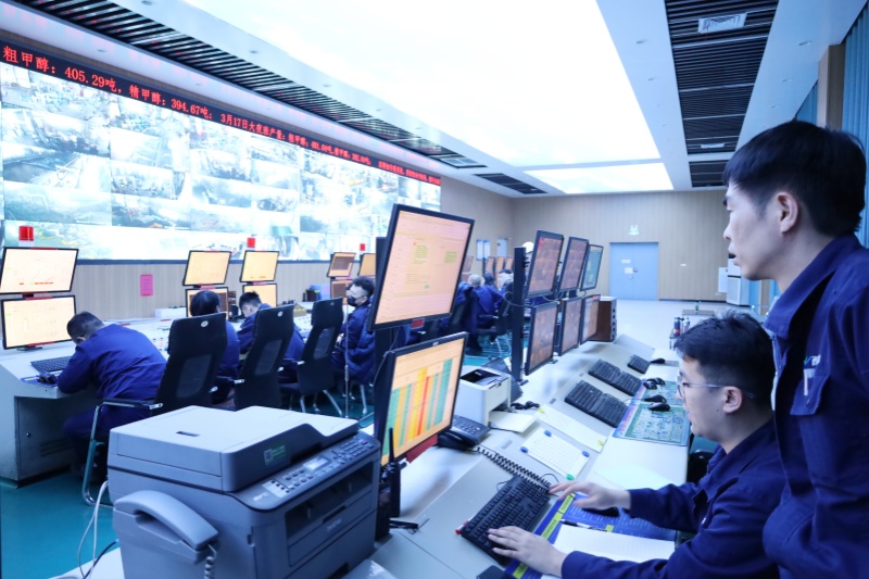 西北能化公司中央控制室,大屏幕上跳动着各类工艺参数,操作人员正聚精会神地调整着生产指标。气化车间煤浆制备厂房内,棒磨机正高效运行;净化合成车间,技术人员密切关注催化剂床层温度,确保甲醇合成反应高效进行。每一个环节都井然有序,每一道工序都精益求精。